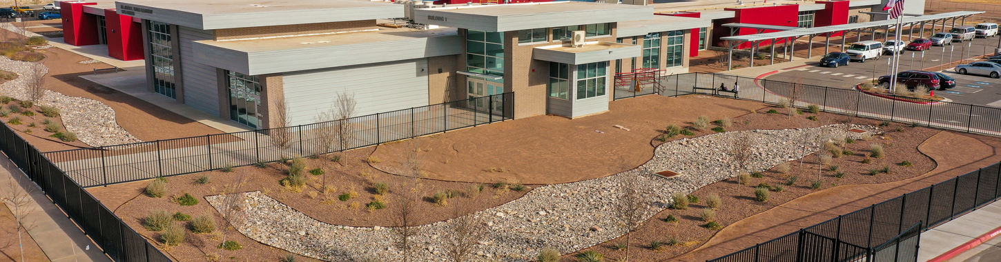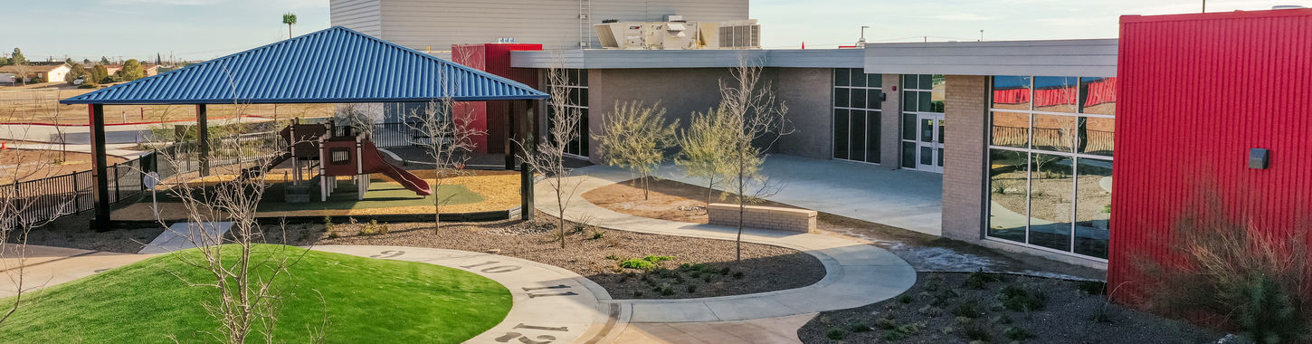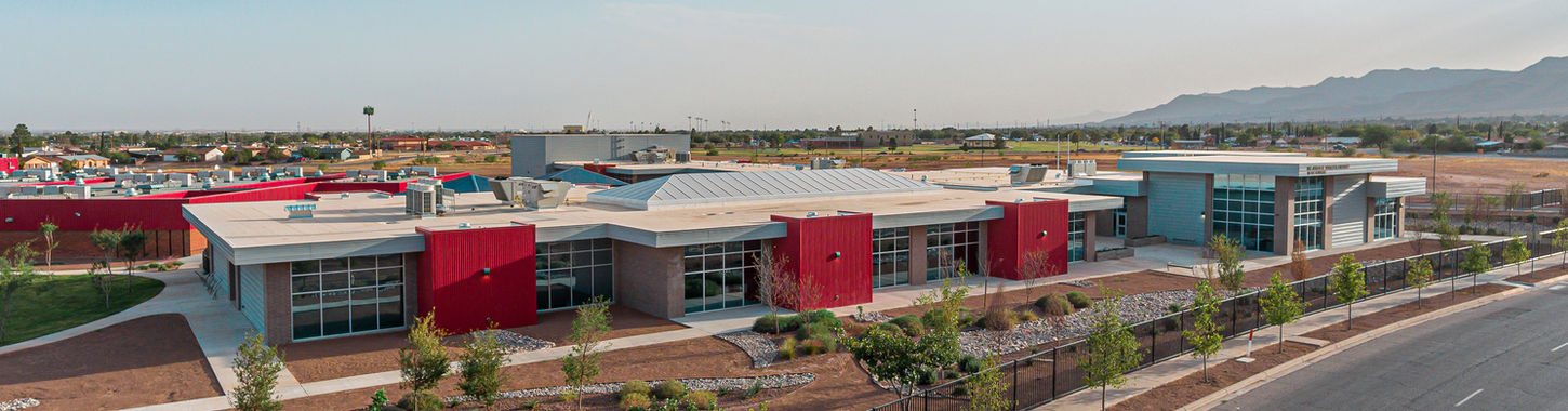 The new construction portion of the project was designed to safely separate the areas of student drop-off, bus drop-off, and the service yard. There is a new administrative suite with a well-defined school entrance that is compliant with City of El Paso design requirements. The suite also includes a new library, teacher workroom, and an early childhood center for grades pre-K to first grade with a secured playground. The new school portion features a 21st Century design which encourages exploration and experimentation.